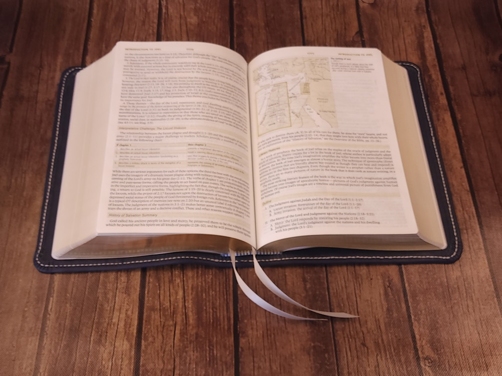 We offer many different Bible editions in several different designs, but we haven’t made every design for every Bible edition we sell (yet!). This means the pictures we display are meant to highlight the custom handcrafted cover rather than the text pages of the Bible (aka the text block) itself. The Bible edition that we’ve crafted the cover for may be different than the Bible edition we’re selling, with different page gilding, thumb-indexing tabs, size, thickness, or other features. As often as we can, we use pictures from Bibles editions with similar features to the Bible editions we’re listing.