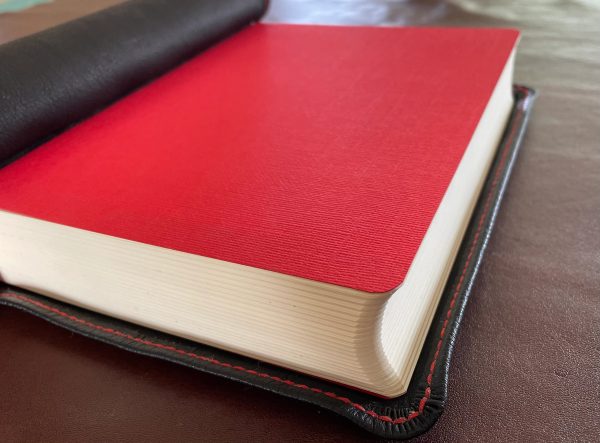 We offer many different Bible editions in several different designs, but we haven’t made every design for every Bible edition we sell (yet!). This means the pictures we display are meant to highlight the custom handcrafted cover rather than the text pages of the Bible (aka the text block) itself. The Bible edition that we’ve crafted the cover for may be different than the Bible edition we’re selling, with different page gilding, thumb-indexing tabs, size, thickness, or other features. As often as we can, we use pictures from Bibles editions with similar features to the Bible editions we’re listing.