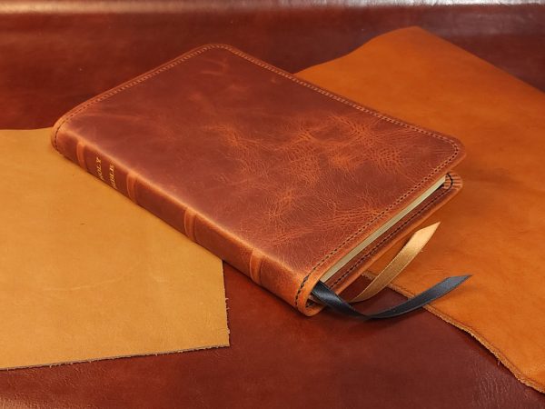 Each of our leather Bibles is a work of art, meticulously handcrafted from start to finish. We specialize in sourcing the finest full-grain leather and undertake a careful process of Bible rebinding. Our engraved Bibles and custom Bible covers are perfect for those who seek a personal touch in their spiritual journey. Dive into our collection and find the perfect custom leather Bible that speaks to you. Every Bible receives individual attention to every detail, from the selection of the finest leathers to the precision of each cut to the superior quality of the finished product. We back every Bible with our Lifetime Guarantee, ensuring its durability and longevity for years to come!