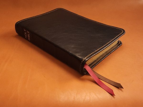 We offer many different Bible editions in several different designs, but we haven’t made every design for every Bible edition we sell (yet!). This means the pictures we display are meant to highlight the custom handcrafted cover rather than the text pages of the Bible (aka the text block) itself. The Bible edition that we’ve crafted the cover for may be different than the Bible edition we’re selling, with different page gilding, thumb-indexing tabs, size, thickness, or other features. As often as we can, we use pictures from Bibles editions with similar features to the Bible editions we’re listing.