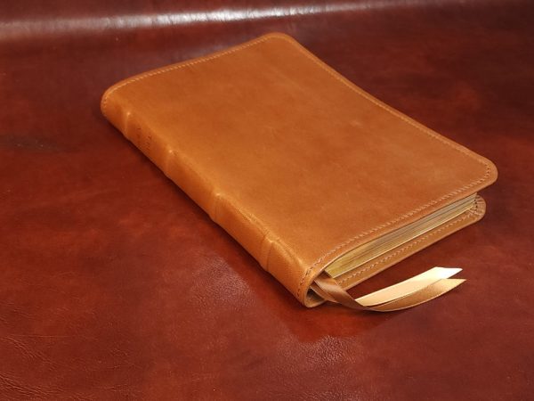 We offer many different Bible editions in several different designs, but we haven’t made every design for every Bible edition we sell (yet!). This means the pictures we display are meant to highlight the custom handcrafted cover rather than the text pages of the Bible (aka the text block) itself. The Bible edition that we’ve crafted the cover for may be different than the Bible edition we’re selling, with different page gilding, thumb-indexing tabs, size, thickness, or other features. As often as we can, we use pictures from Bibles editions with similar features to the Bible editions we’re listing.