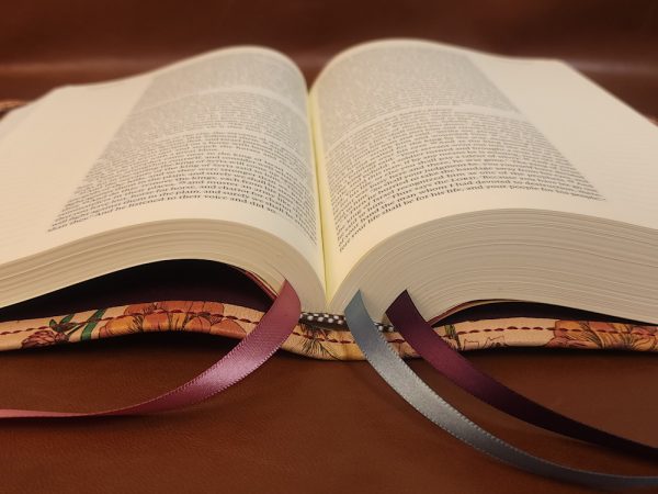We offer many different Bible editions in several different designs, but we haven’t made every design for every Bible edition we sell (yet!). This means the pictures we display are meant to highlight the custom handcrafted cover rather than the text pages of the Bible (aka the text block) itself. The Bible edition that we’ve crafted the cover for may be different than the Bible edition we’re selling, with different page gilding, thumb-indexing tabs, size, thickness, or other features. As often as we can, we use pictures from Bibles editions with similar features to the Bible editions we’re listing.