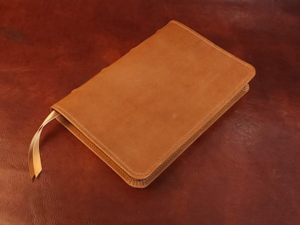 We offer many different Bible editions in several different designs, but we haven’t made every design for every Bible edition we sell (yet!). This means the pictures we display are meant to highlight the custom handcrafted cover rather than the text pages of the Bible (aka the text block) itself. The Bible edition that we’ve crafted the cover for may be different than the Bible edition we’re selling, with different page gilding, thumb-indexing tabs, size, thickness, or other features. As often as we can, we use pictures from Bibles editions with similar features to the Bible editions we’re listing.