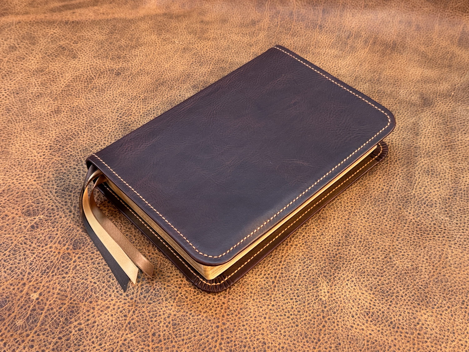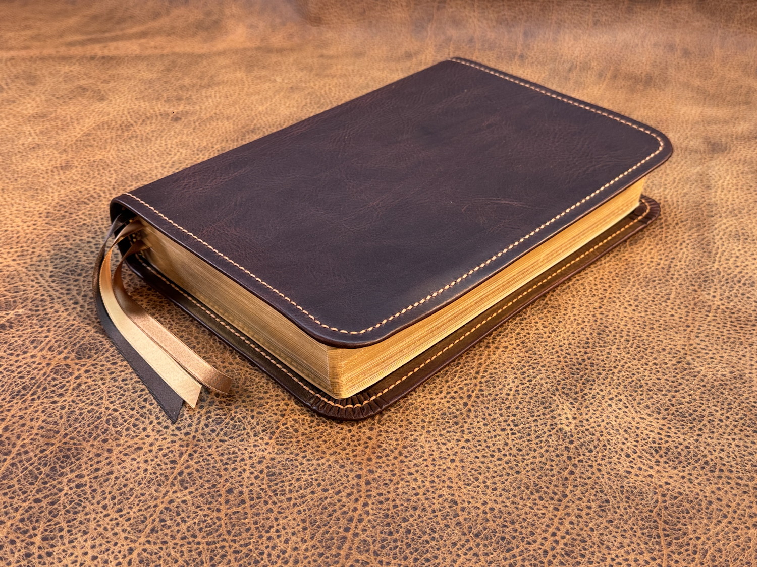 Each of our leather Bibles is a work of art, meticulously handcrafted from start to finish. We specialize in sourcing the finest full-grain leather and undertake a careful process of Bible rebinding. Our engraved Bibles and custom Bible covers are perfect for those who seek a personal touch in their spiritual journey. Dive into our collection and find the perfect custom leather Bible that speaks to you. Every Bible receives individual attention to every detail, from the selection of the finest leathers to the precision of each cut to the superior quality of the finished product. We back every Bible with our Lifetime Guarantee, ensuring its durability and longevity for years to come!