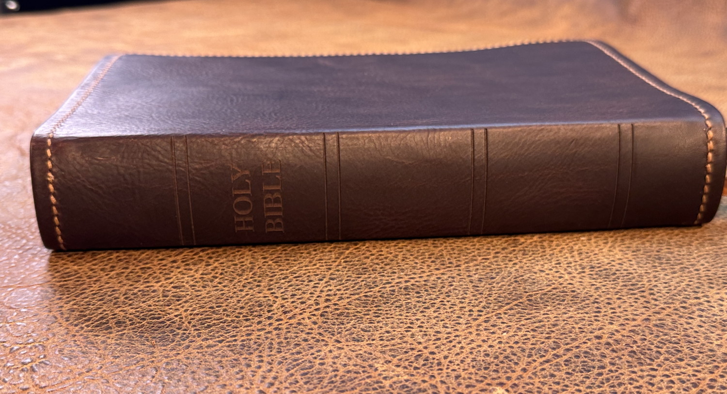 Crafted with love and precision, the high-quality leather binding gives the Thinline Bible a sophisticated and elegant feel. The soft leather cover not only adds to the aesthetic appeal but also enhances the durability, ensuring this Bible can be passed down through generations.