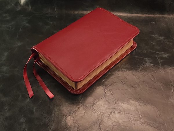 We offer many different Bible editions in several different designs, but we haven’t made every design for every Bible edition we sell (yet!). This means the pictures we display are meant to highlight the custom handcrafted cover rather than the text pages of the Bible (aka the text block) itself. The Bible edition that we’ve crafted the cover for may be different than the Bible edition we’re selling, with different page gilding, thumb-indexing tabs, size, thickness, or other features. As often as we can, we use pictures from Bibles editions with similar features to the Bible editions we’re listing.